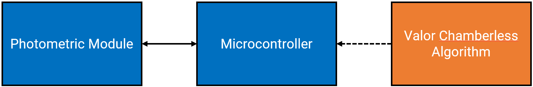 Microcontroller (MCU) Valor Chamberless can efficiently run on an MCU with a minimum of an 8-bit core, 8 kB of program memory, and 1 kB of RAM. The source code containing the Valor Chamberless algorithm is written in C/C++ and gets programmed into the MCU firmware.
